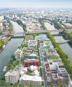 Given the rampant protests associated with the construction of Olympic venues from previous games, it is little surprise that a key pillar of the Paris Olympics’ sustainability agenda is limiting the construction of new venues. Organizers have emphasized that only two new sports facilities—the aquatic center and a climbing venue—are being built in Paris, along with the Olympic Village where athletes reside, and the Media Village where media operations are headquartered. These efforts fold into a broader strategy to minimize the carbon footprint associated with new structures through the reuse and repurposing of existing sites and employing bio-sourced materials like wood and recycled plastic waste for construction. What’s more, after the games have finished, the Olympic Village, constructed in the historically underserved Seine-Saint-Denis neighborhood is slated to transform into a new city district featuring 2,500 new homes for students and lower-income families, mixed-use commercial space, a 7.5-acre park, and 17 acres of gardens.