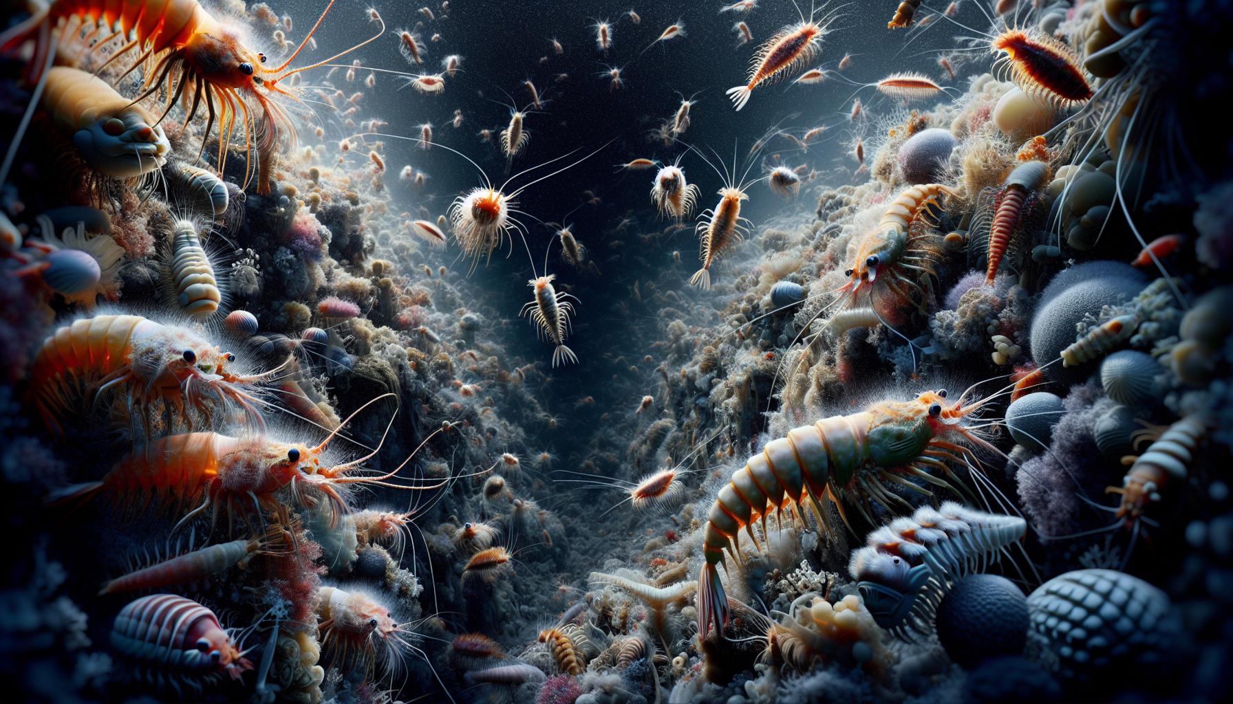 Recent explorations by deep-sea vehicles have uncovered communities of organisms that have adapted to this dark and high-pressure environment. These discoveries include a range of creatures from simple microbes to complex multicellular organisms such as amphipods, a type of shrimp-like crustacean. Such wildlife has evolved to survive with minimal light and an abundance of pressure, demonstrating the resilience of life on Earth.